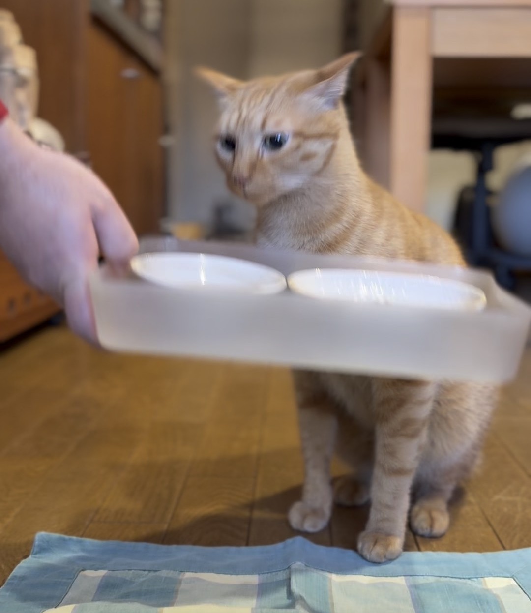 新しい自動給餌器が家にやってきたトラきちは、最初は警戒していたが。。
