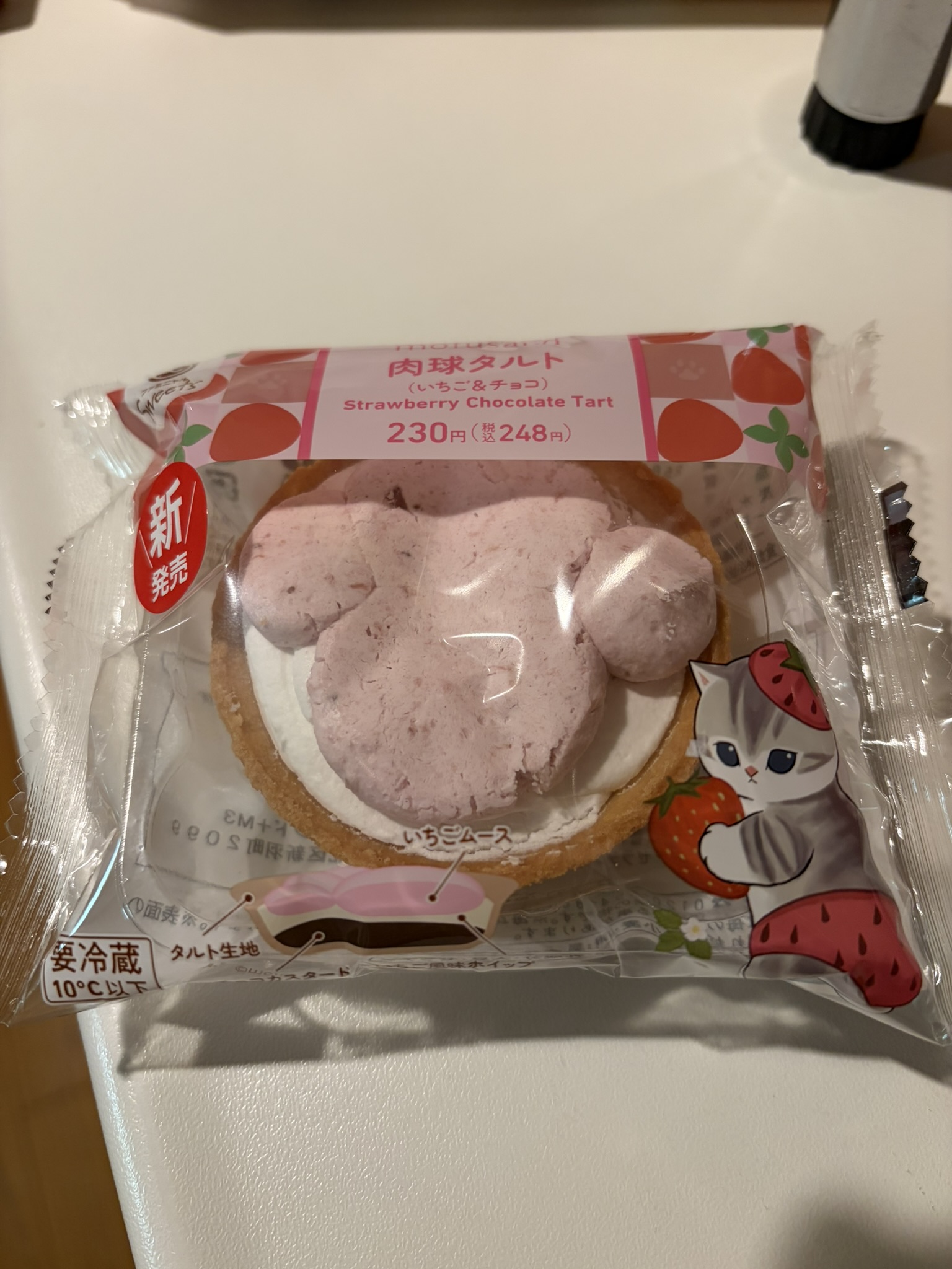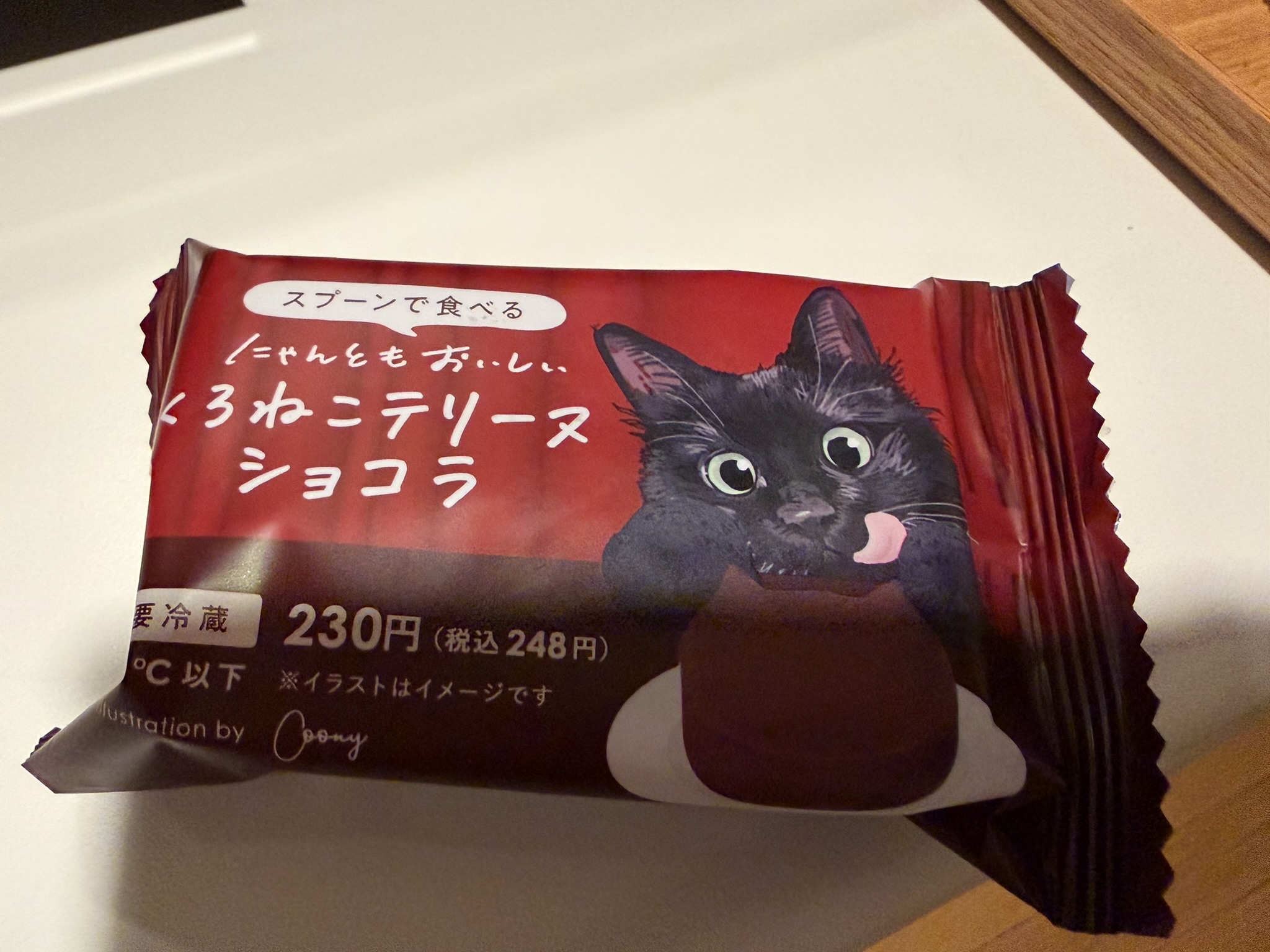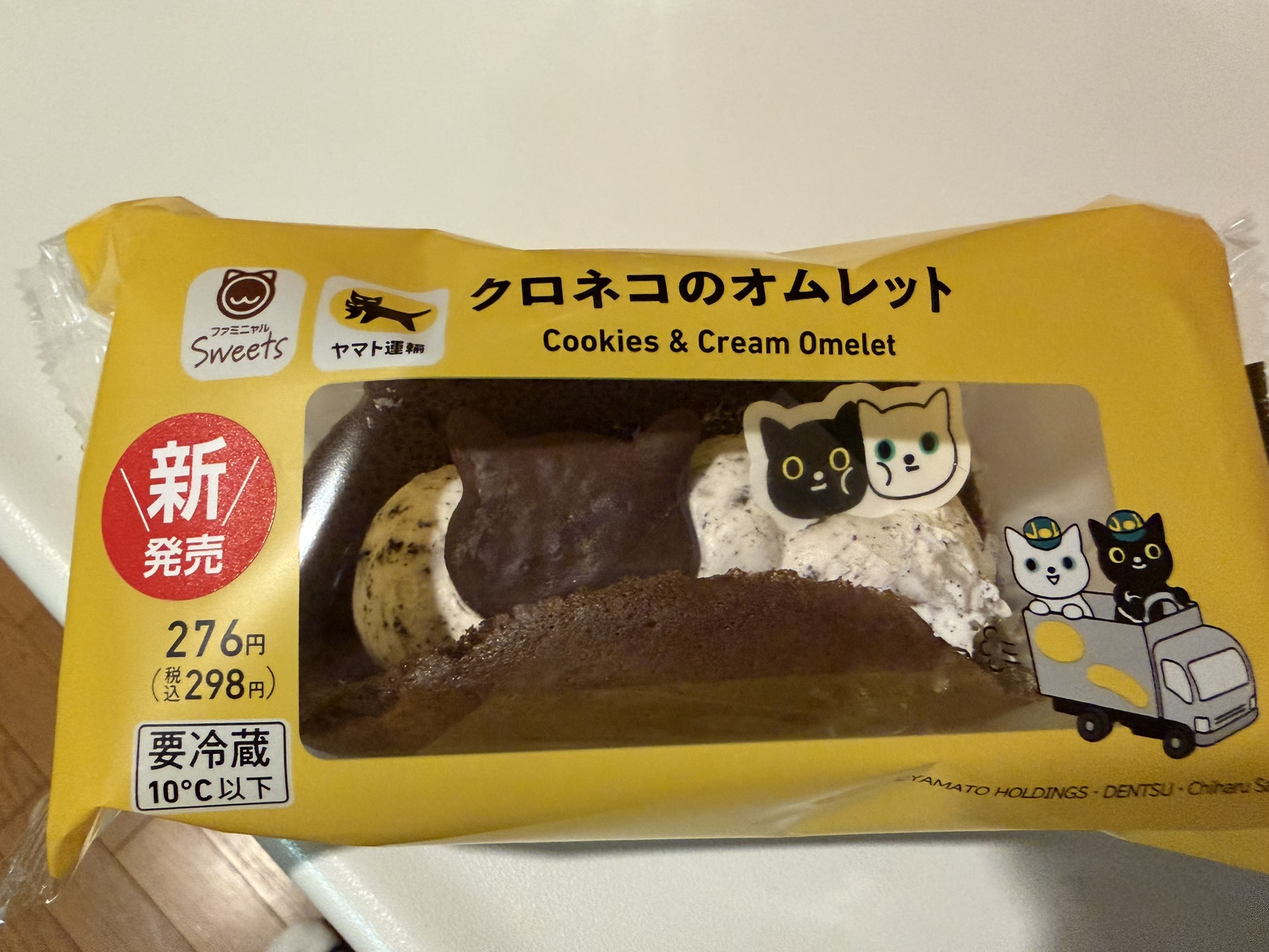 ママがファミリーマートから帰ってきたと思ったら、袋の中には猫の絵がついたお菓子。肉球タルトに黒猫のチョコケーキ?…ふーん、ボクのじゃないんだね。