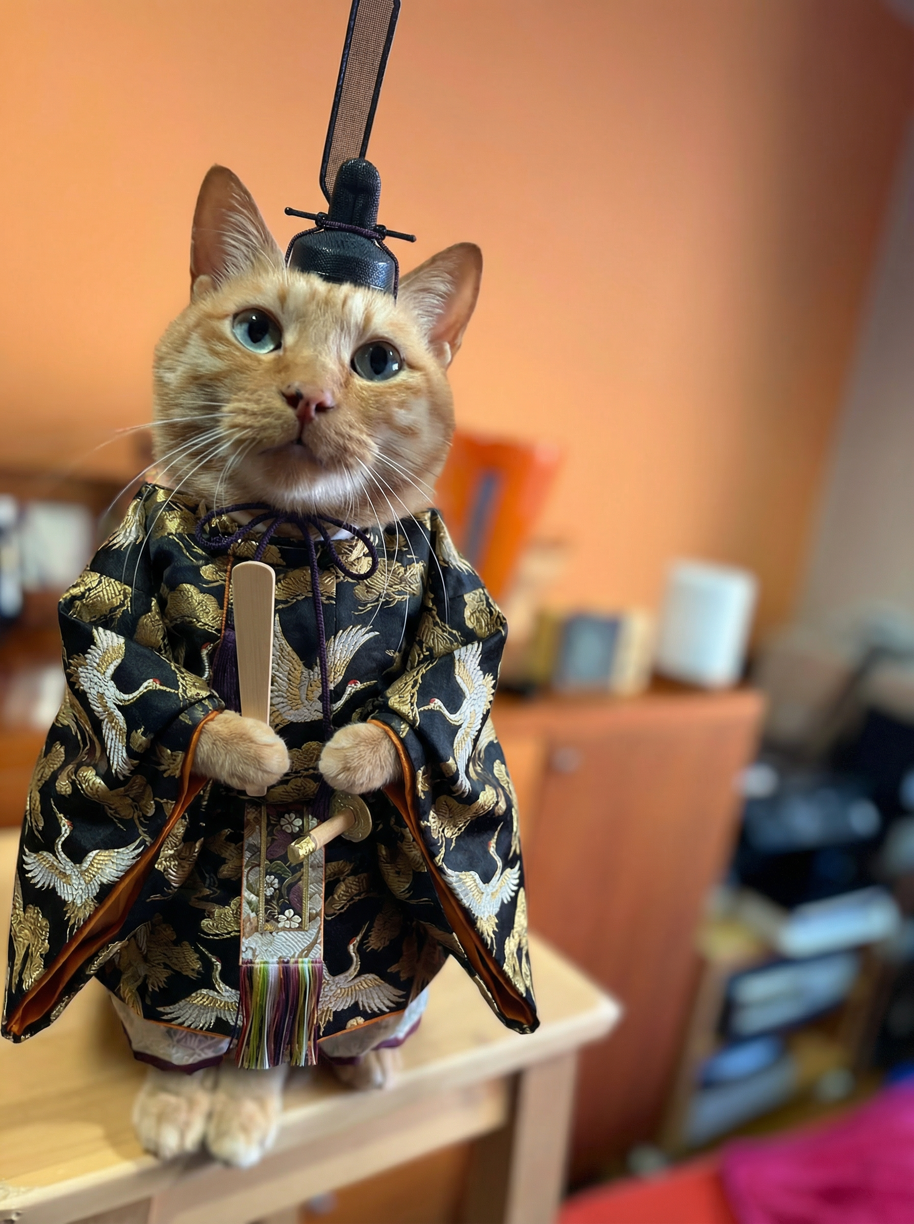 「トラくん、お内裏さまの格好したらかわいいよ~」