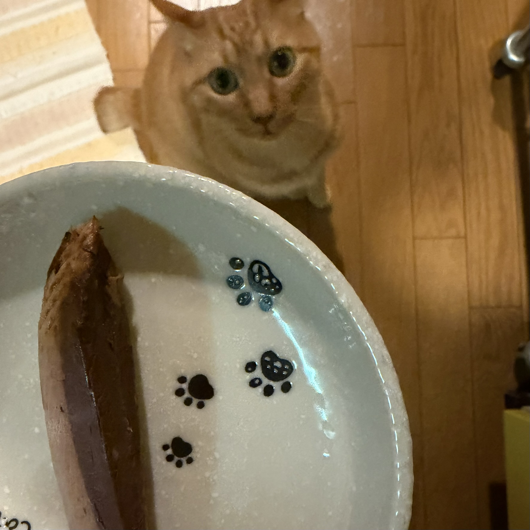 でも、さすがに猫の日は、焼きカツオを湯煎してもらったんだ。猫の日イブの2/21と猫の日の2/22は焼きカツオを堪能できたよ。