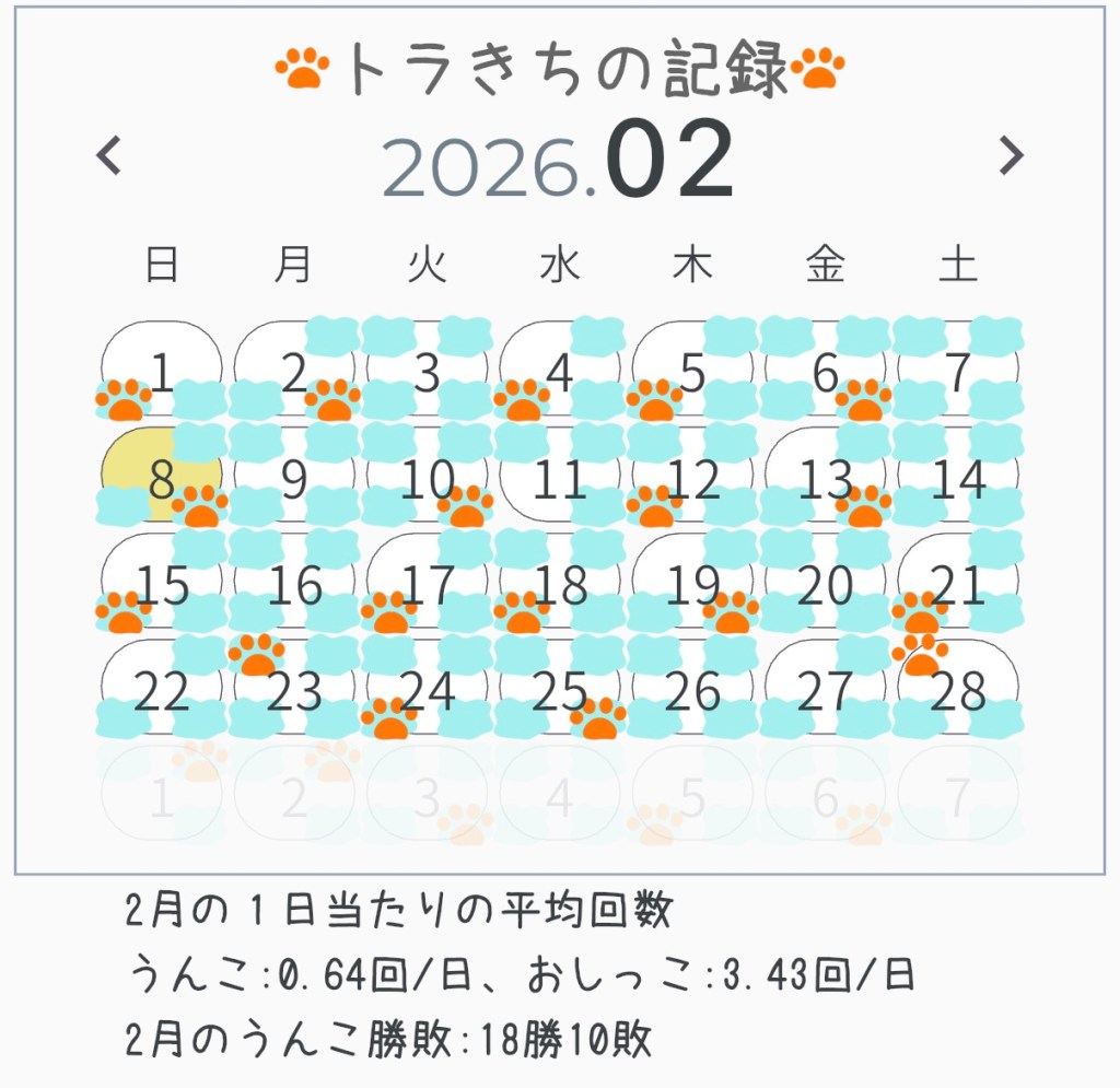 それから、おしっこは、1月よりもがんばっちゃった!やっぱり、おやつでモチベ上がっちゃう。