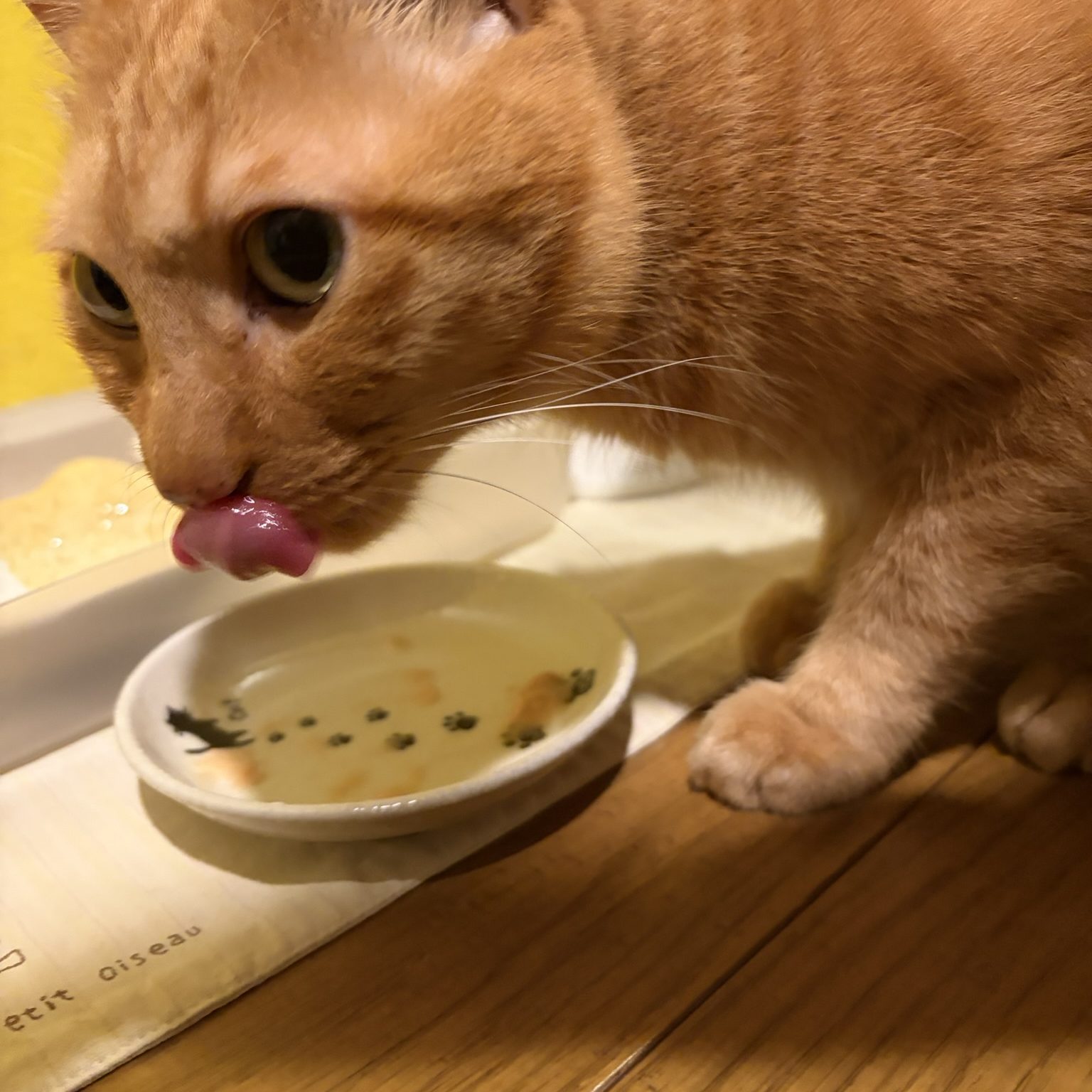 基本のごはんは、カリカリで歯ごたえが好きで結構気に入ってる。そして、1日に1袋のパウチを薄めてスープにしてくれたものがつく。これをボクは、『カリカリ定食』って呼んでいるんだ。