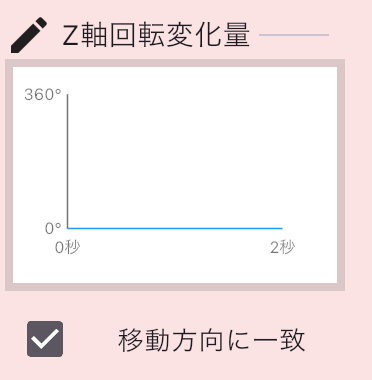 若干、設定が異なる箇所は、アイテムのZ軸回転変化量のところにある「移動方向に一致」のチェックをONにしておきます。そうする事により軌道パスに沿ってアイテムの向きが変化する様になります。