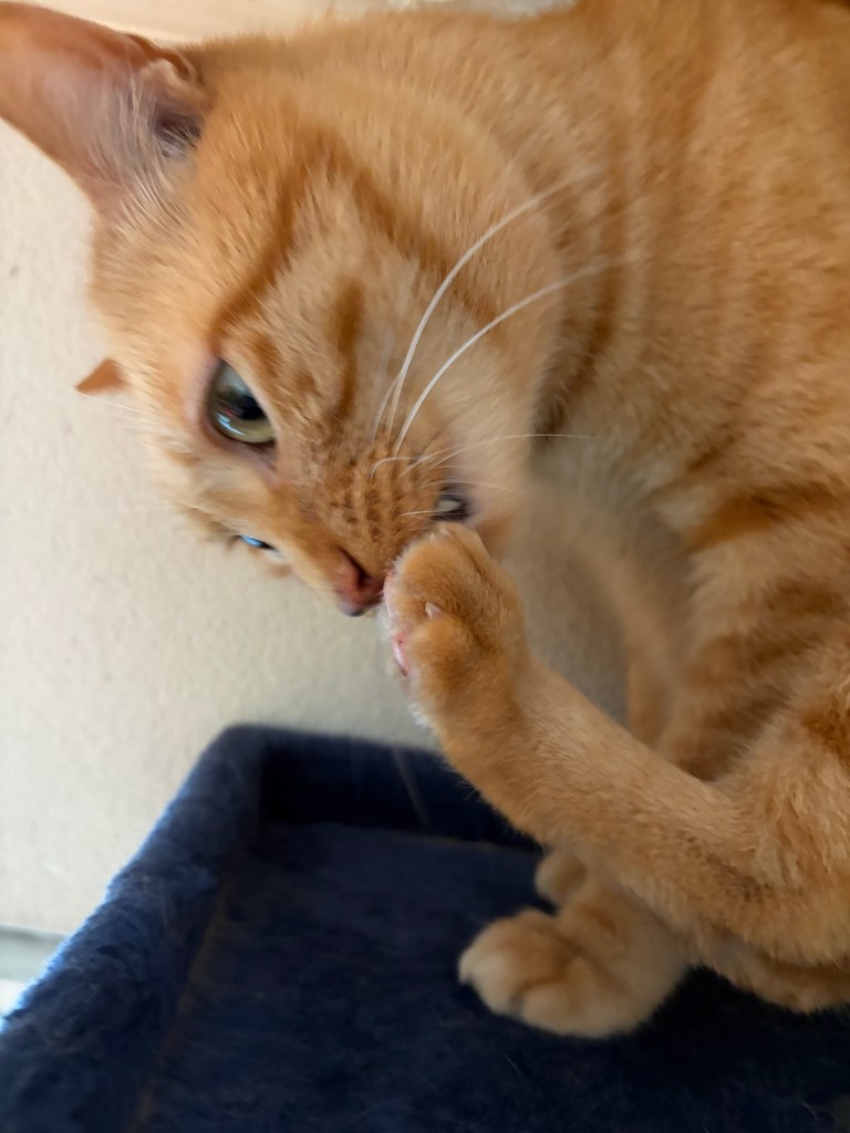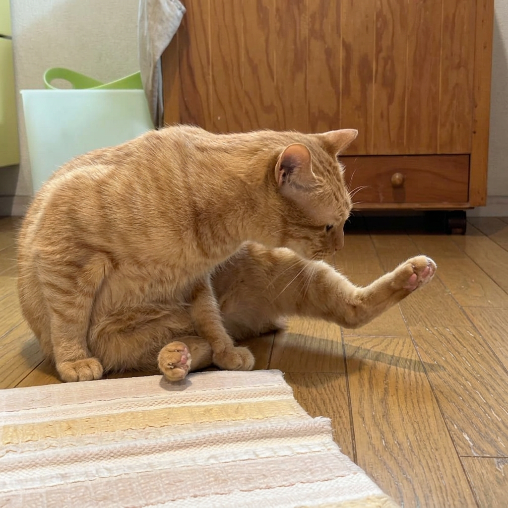 肉球の間をぺろぺろして、爪の先まできれいにして……