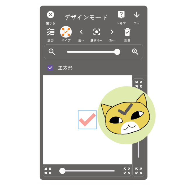 【おてがるキャット】デザインモードのサイズ変更フレーム