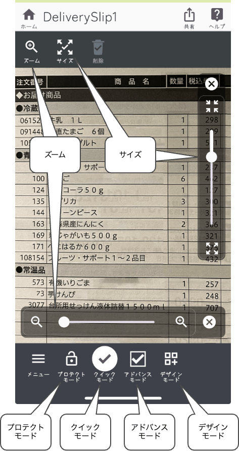 プロテクトモードでは、ズーム操作が可能です。画面の拡大/縮小表示が出来ます。ズーム