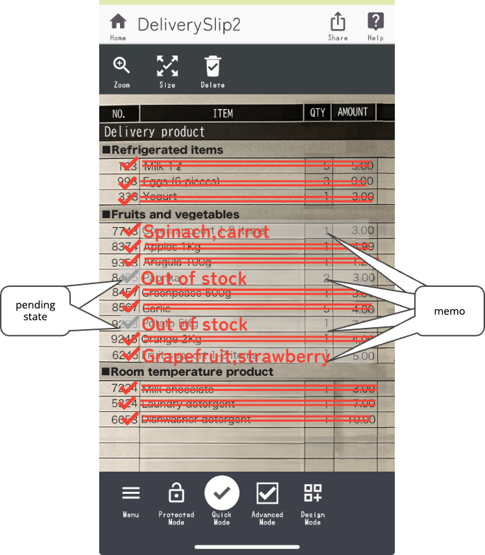 By double-tapping the checkmark or strikethrough, you can enter “memo” as “additional information” or put it on hold.