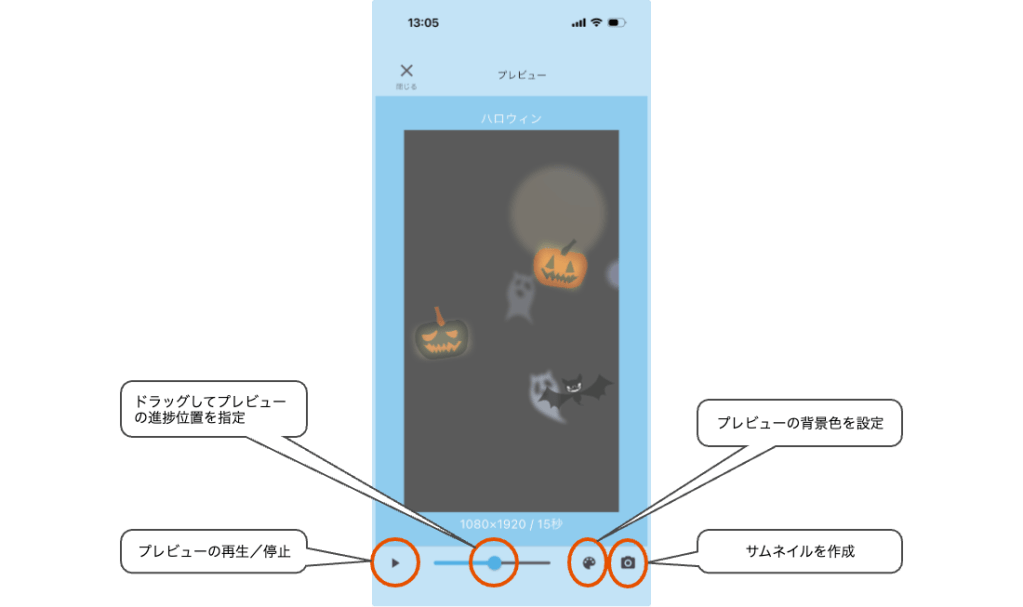 最終的に出力出来る動画は、主にSNSにアップすることを目的としています。その為、作成出来るアニメーションもSNSにアップロード出来る動画のサイズ(アスペクト比)を前提にしています。また、作成出来るアニメーションの長さも短めですが、アニメーションWebPの作り方次第でループ再生時に途切れなく再生出来る様な仕組みを設けています。
